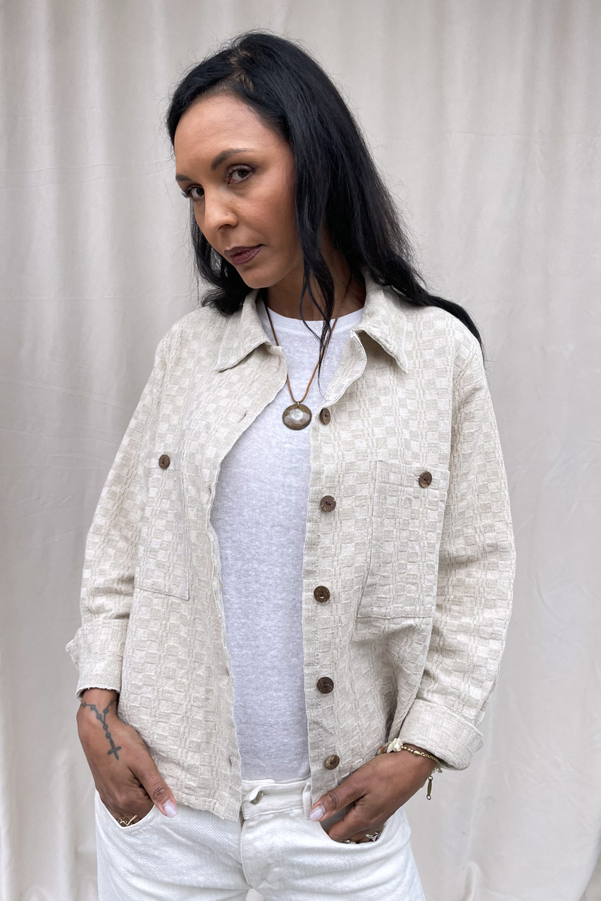 €152,00Fenice è una giacca-camicia decostruita dalla linea dritta e morbida, caratterizzata da un aspetto grezzo e autentico. Fenice esprime forza e naturalezza attraverso la materia. Il suo carattere nasce dal tessuto antico, dal colore corda naturale e dalla lavorazione a quadretto che ne definisce l’identità.